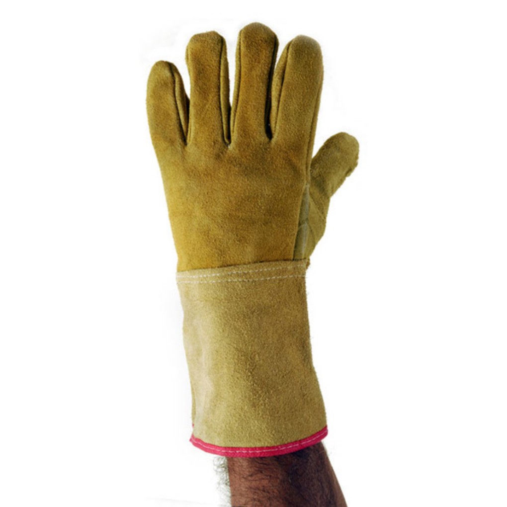 Guante industrial de cuero descarne con puño largo forrado y costuras de Kevlar, ideal para protección contra riesgos mecánicos y térmicos moderados en trabajos industriales exigentes. Este guante es ampliamente utilizado en sectores como la industria petrolera, minera, gasífera, metalúrgica, siderúrgica, automotriz y autopartista, así como en ferreterías industriales y empresas de mantenimiento.