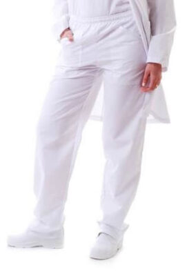 Pantalón náutico unisex para medicina con cintura elastizada y cordón. Dos bolsillos delanteros y uno posterior. Colores blanco y celeste. Talles 1 a 5.